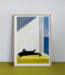 Inspired by the work of the artist 'Edward Hopper'. This print is a funny version of the artwork 'Rooms by the Sea', now reimagined as 'Cat bathing by the Sea'. Read more..
