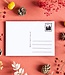 De ansichtkaart in het formaat 14,8 x 10,5 cm (A6) is gedrukt op 300g wit, FSC-gecertificeerd offsetpapier. Op de achterkant zijn de lijnen voor het adresveld aangegeven, samen met een kleine illustratie op de plek waar de postzegel komt.